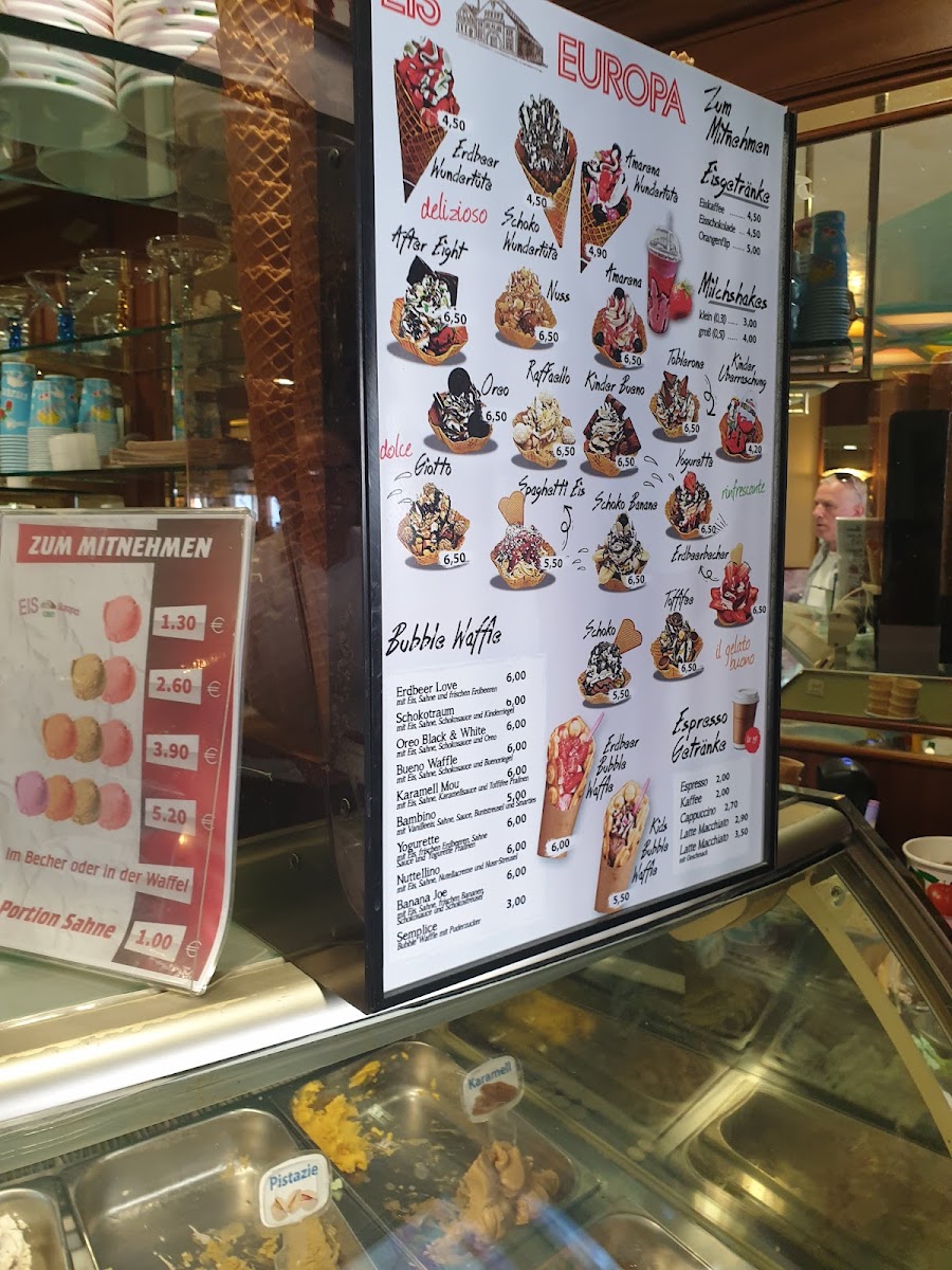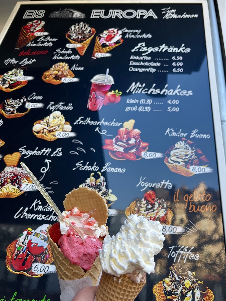 Located in the heart of Wattenscheid at Saarlandstraße 3, Ice Cream Parlor Europa offers a charming blend of tradition and quality. The menu shines through its classic ice cream selection, praised for its creamy texture and rich flavors—a true delight for any ice cream lover. Guests also appreciate the fresh and lovingly prepared breakfast options, adding a versatile touch beyond just desserts. The cozy, nostalgic ambiance, enhanced by a prime riverside terrace, provides an inviting space to savor each bite. While the seating may come with a small surcharge, the attentive and friendly staff ensure a warm experience. Highlights include fruity sorbets and indulgent ice creams, though some occasionally note minor inconsistencies in specialty flavors like Snickers. Overall, Ice Cream Parlor Europa stands as a beloved local gem, balancing tradition with quality, where every visit is a comforting escape into tasty, handcrafted treats.